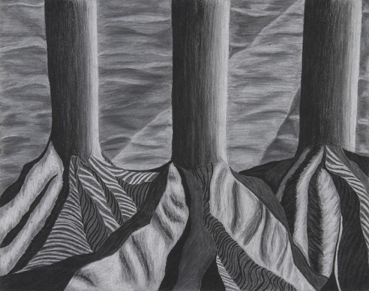 pencil, charcoal, conte on paper